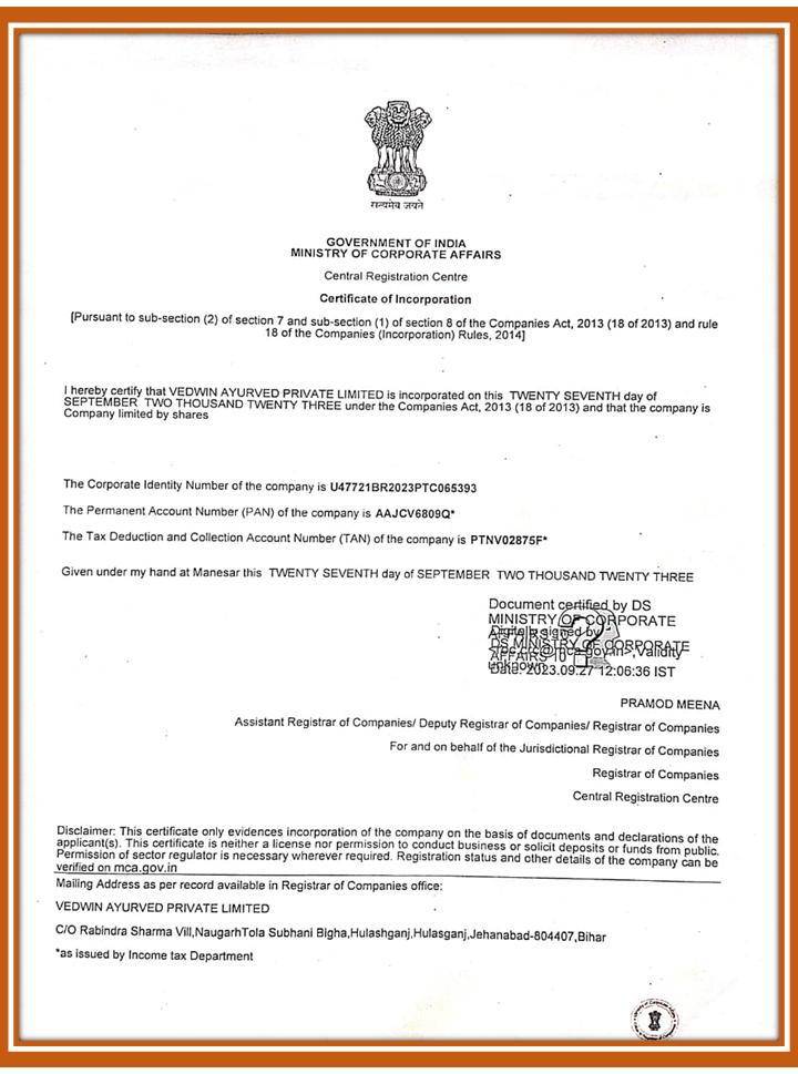 Certificate of Incorporation